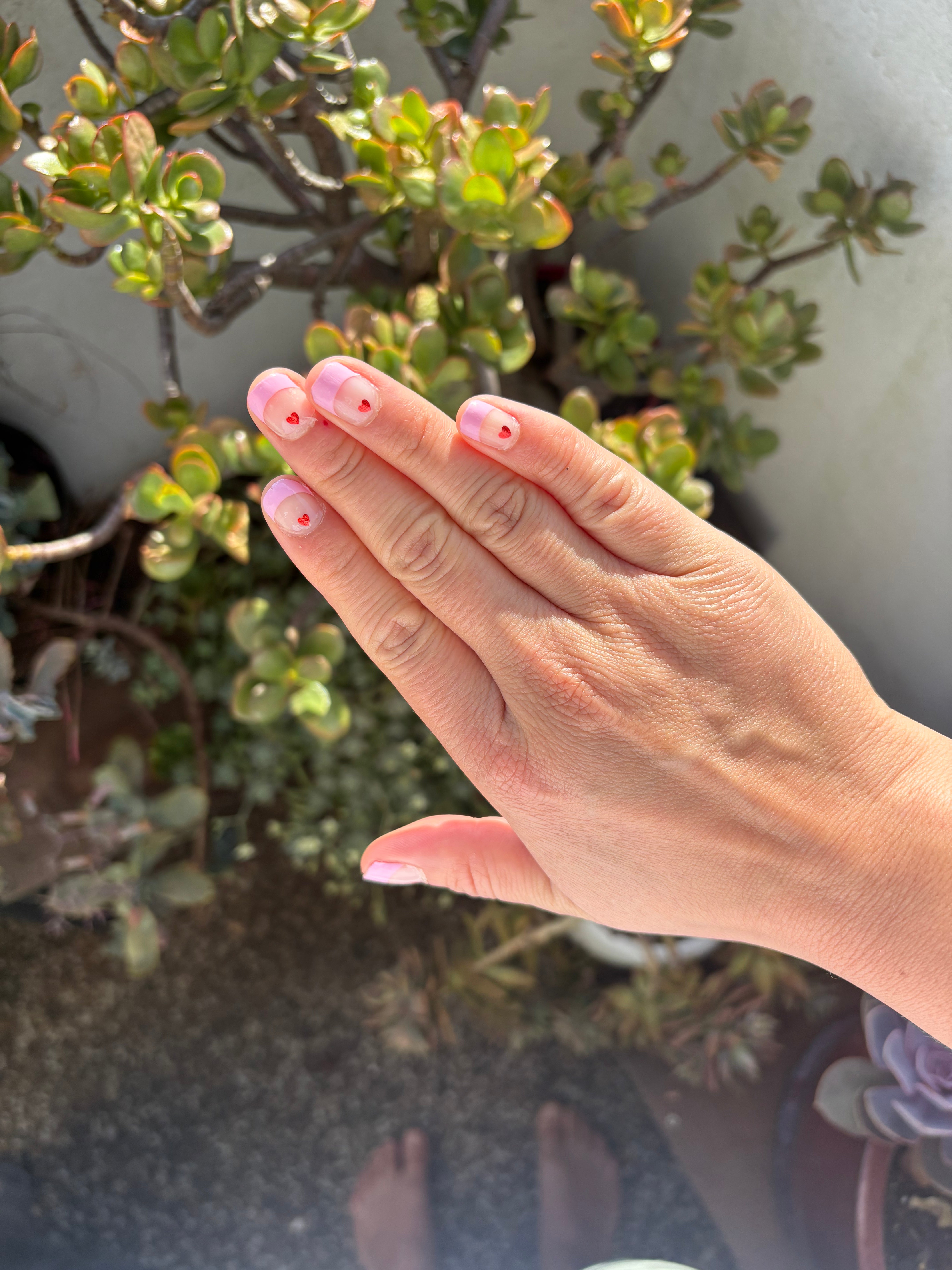 Manicure the moment with soft pink tips and a tiny heart that always hits.